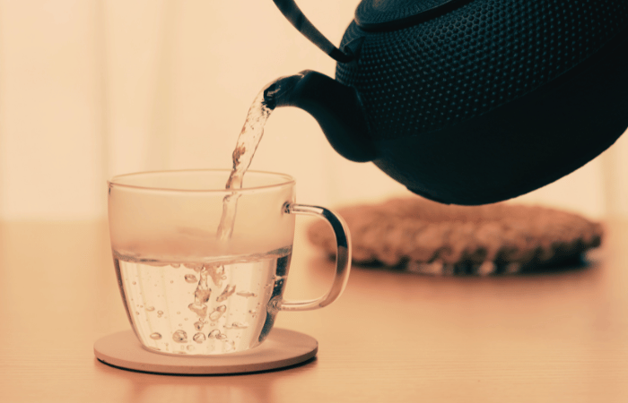 7. お湯で確認: 水を沸かし、お湯が澄んで金属臭がなければ完了。濁りや臭いが続く場合は、お茶煮出しを繰り返します。