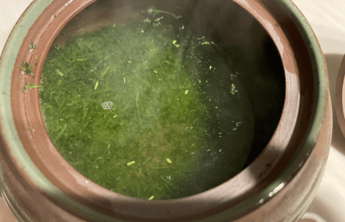 八女茶の清らかな余韻、塩味とお茶の甘味が食事を引き立てます。